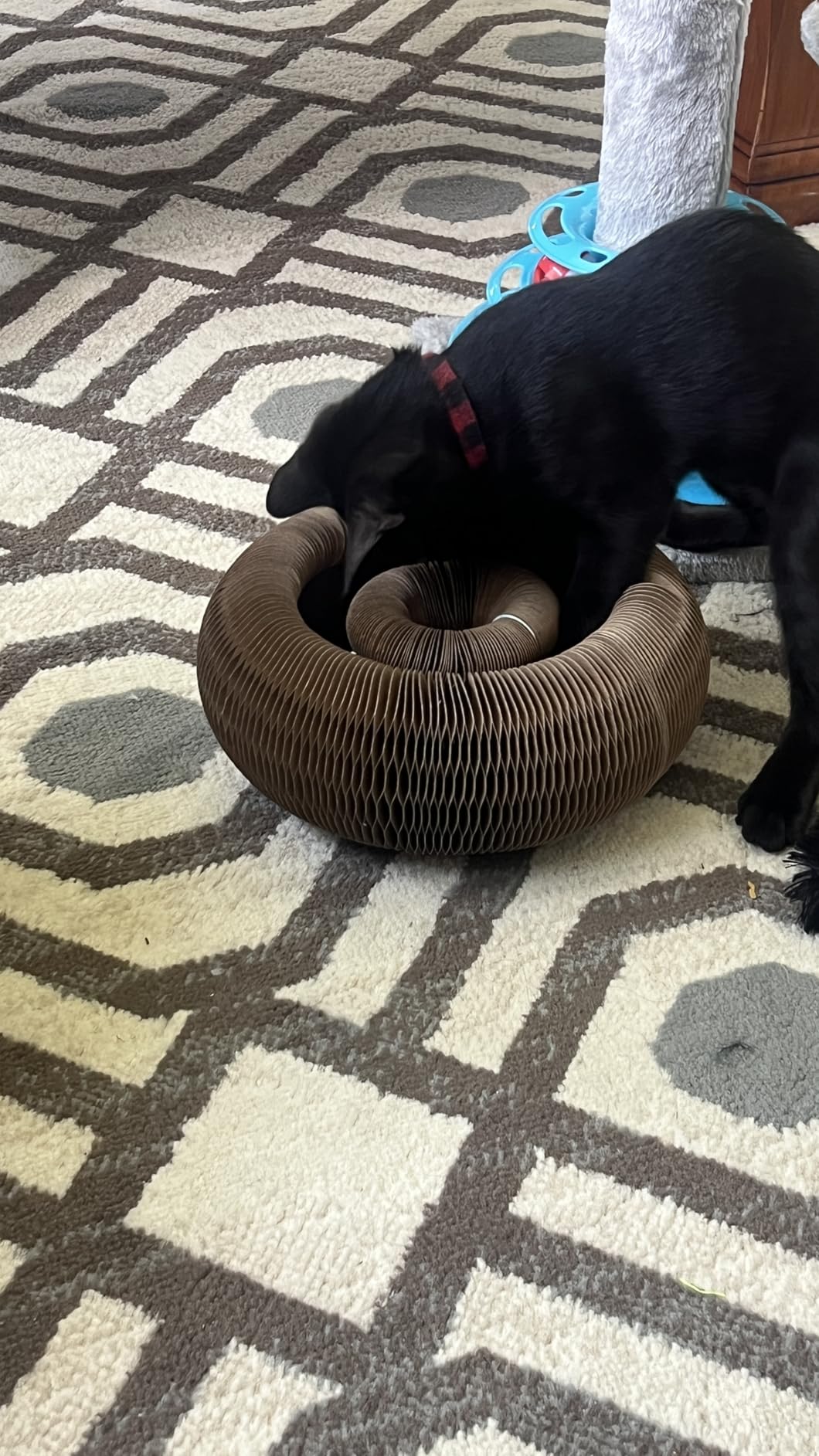La estructura está diseñada para que la bola permanezca dentro del canal al usarlo, incluso cuando el gato lo juega activamente.